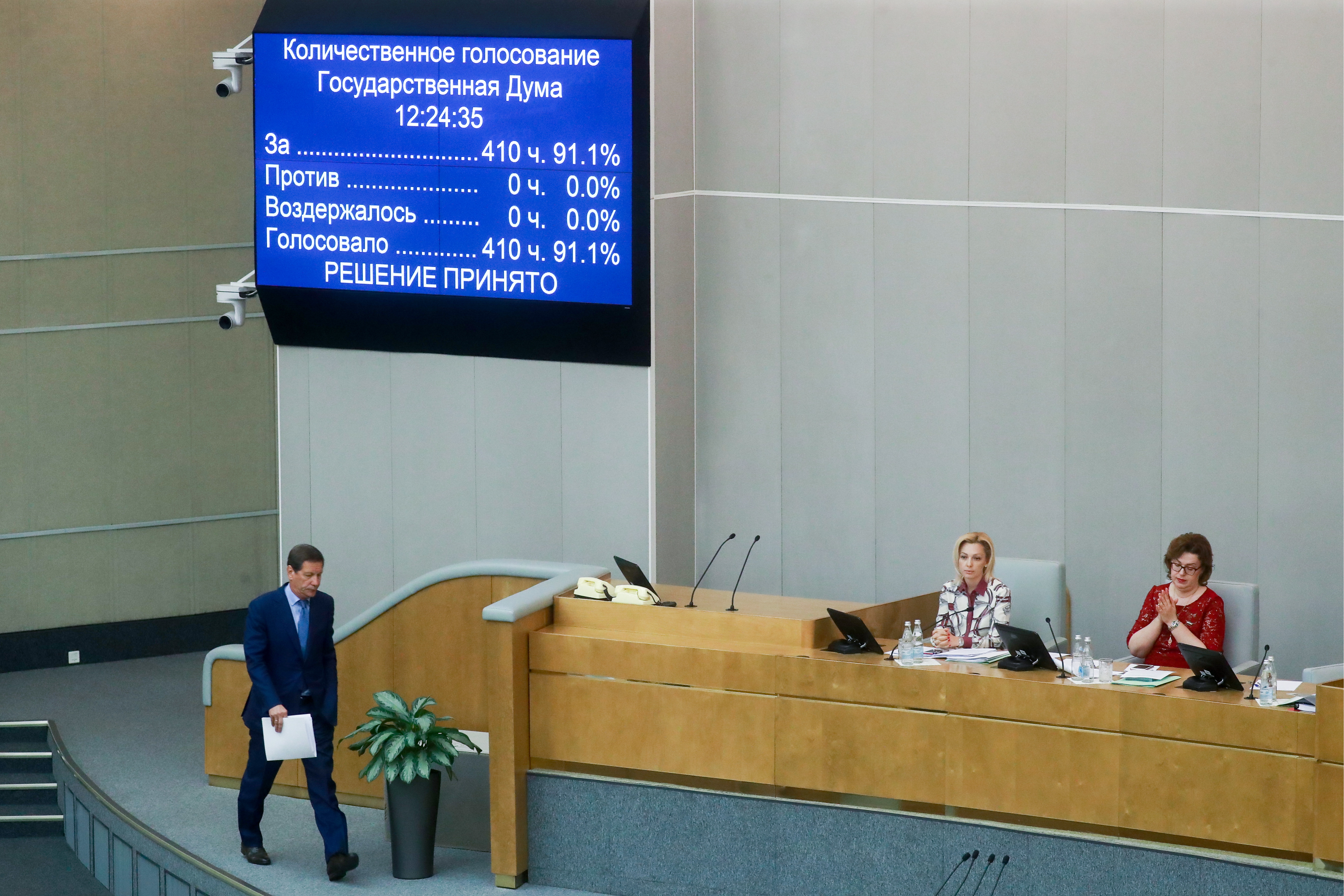 Государственная дума России в первом чтении 15 мая приняла законопроект о "контрсанкциях". Его единогласно поддержали все 410 депутатов, присутствовавших на заседании. Одновременно с этим депутаты приняли поправки в Уголовный кодекс РФ, которые вводят ответственность "за исполнение иностранных санкций на территории России".