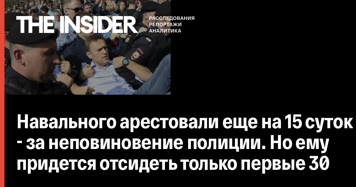 Навального арестовали еще на 15 суток - за неповиновение полиции. Но ему придется отсидеть только первые 30