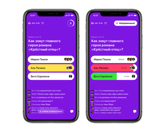 В начале мая такой же режим для компаний запустили в викторине HQ Trivia, аналогом которой стал «Клевер». В нём пользователи могут видеть, как отвечают их друзья, которых можно добавить из контактов на телефоне.