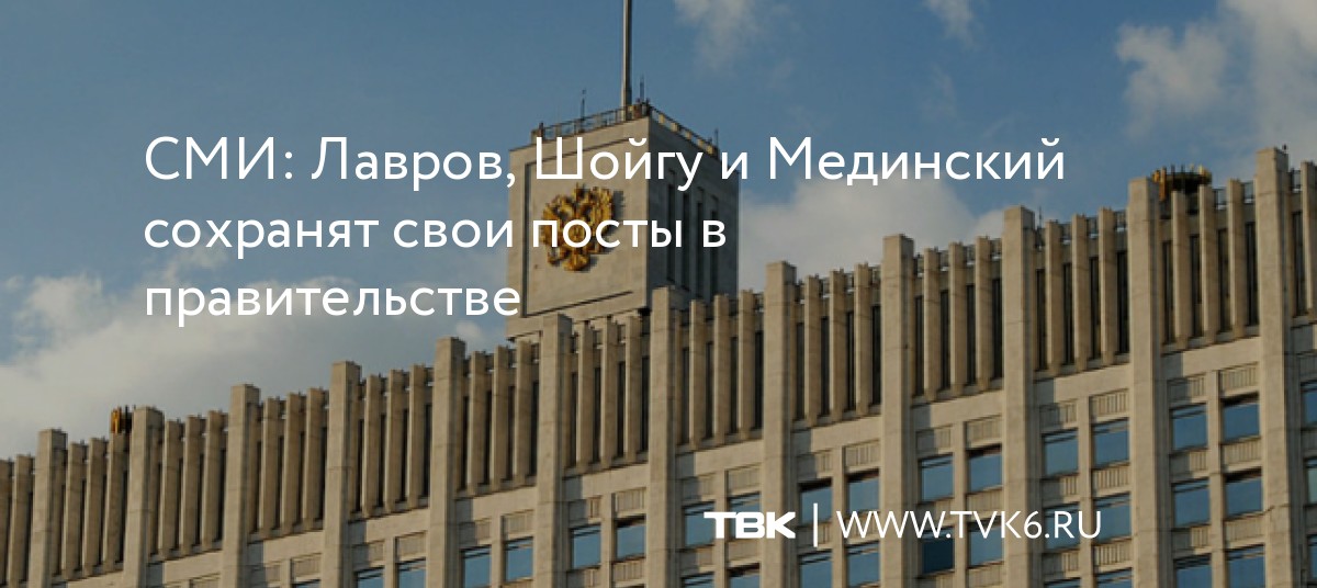 СМИ: Лавров, Шойгу и Мединский сохранят свои посты в правительстве