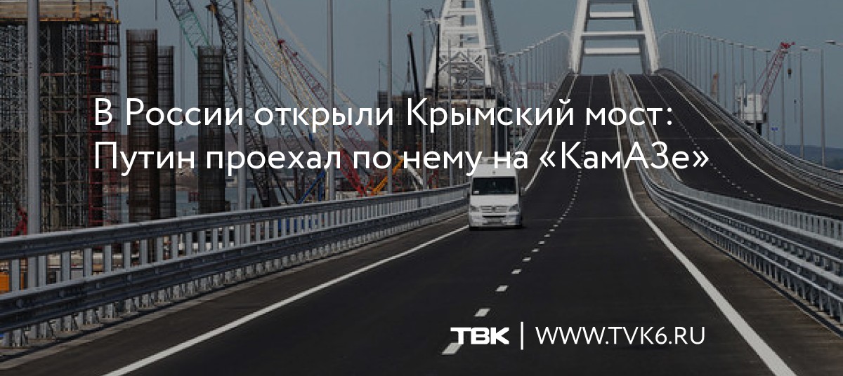 Как сообщают «Ведомости», движение колонны из 36 автомобилей по 19-километровому мосту началось со стороны Тамани. Около 15:02 (мск) «КамАЗ» Путина проехал арку моста над фарватером.