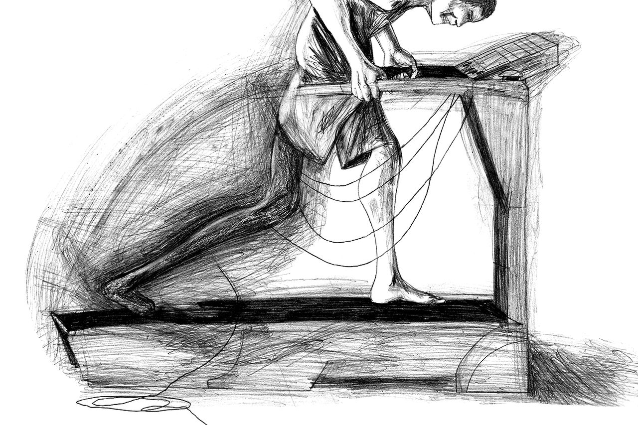 Мужчина в семейных трусах неуверенно шагает по беговой дорожке. Хотя, конечно, сложно назвать эту дорожку беговой для него. На вид ему не больше сорока пяти, но инсульт превратил здорового и крепкого человека в худого шестидесятилетнего старика.