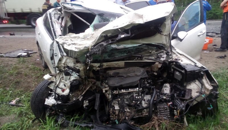 От сильного удара легковой автомобиль превратился в груду обломков. В нём находилось шесть человек. Одна из пассажирок скончалась, водитель и ещё четверо людей, в том числе две несовершеннолетние девушки, получили тяжёлые травмы.