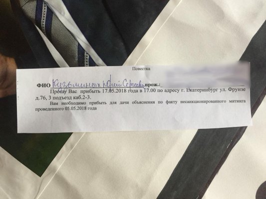 Координатору, заявителю акции «Он нам не царь» и еще нескольким волонтерам вручили повестки «для дачи объяснения по факту несанкционированного митинга».