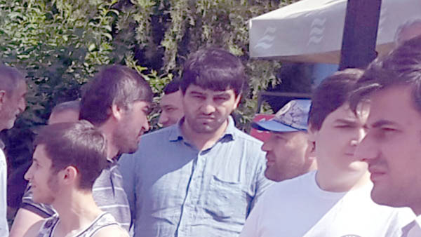 Конфликт начала снимать на видеокамеру корреспондент «Кавказского узла» Патимат Махмудова, к ней подошел крупный мужчина в синей рубашке — как выяснится позже, его зовут Карим Касумов — и потребовал прекратить съемку. Журналистка отказалась. Касумов, выкручивая женщине руку, попытался отбрать у нее камеру, но помешал шнурок, надетый на запястье, так что нападающий просто отломал поворотный экран и выбросил его.