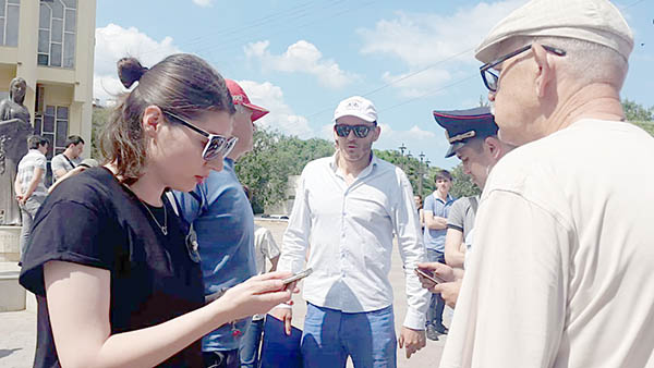 На самой площади стоят несколько человек, которые не участвуют в праздничных гуляниях — они пришли на акцию оппозиционера Алексея Навального, чьи сторонники в этот день по всей стране протестуют против коррупции. В столице Дагестана заявителем митинга стал юрист Марат Исмаилов. Статус мероприятия до последнего оставался неопределенным: мэрия его не согласовала, но Исмаилов обратился в суд, который обязал городскую администрацию разрешить акцию. В мэрии заявителю сказали, что не получили решение суда, тогда юрист объявил, что проведет митинг на свой страх и риск. Полгода спустя он даже отсудит у горадминистрации 10 тысяч рублей компенсации морального ущерба за незаконный отказ в согласовании, но утро Дня России — 2017 началось для Марата с визита полицейских.