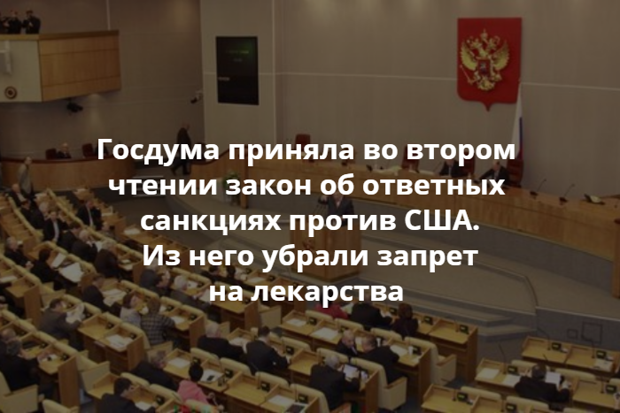 Ко второму чтению из текста законопроекта убрали упоминание конкретных сфер, на которые могут распространяться санкции. В том числе из текста убрали возможный запрет на импортные лекарства, который раньше был четко прописан в законопроекте.