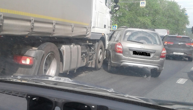 Девушка при попытке перестроиться в левый ряд не рассчитала маневр. Произошло столкновение с грузовиком. К счастью, никто не пострадал. В результате аварии возникла пробка длиной около километра.