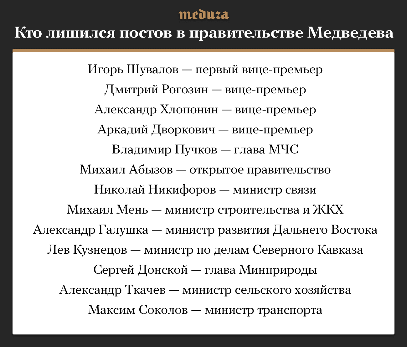 Кто лишился постов в правительстве Дмитрия Медведева. В одной картинке