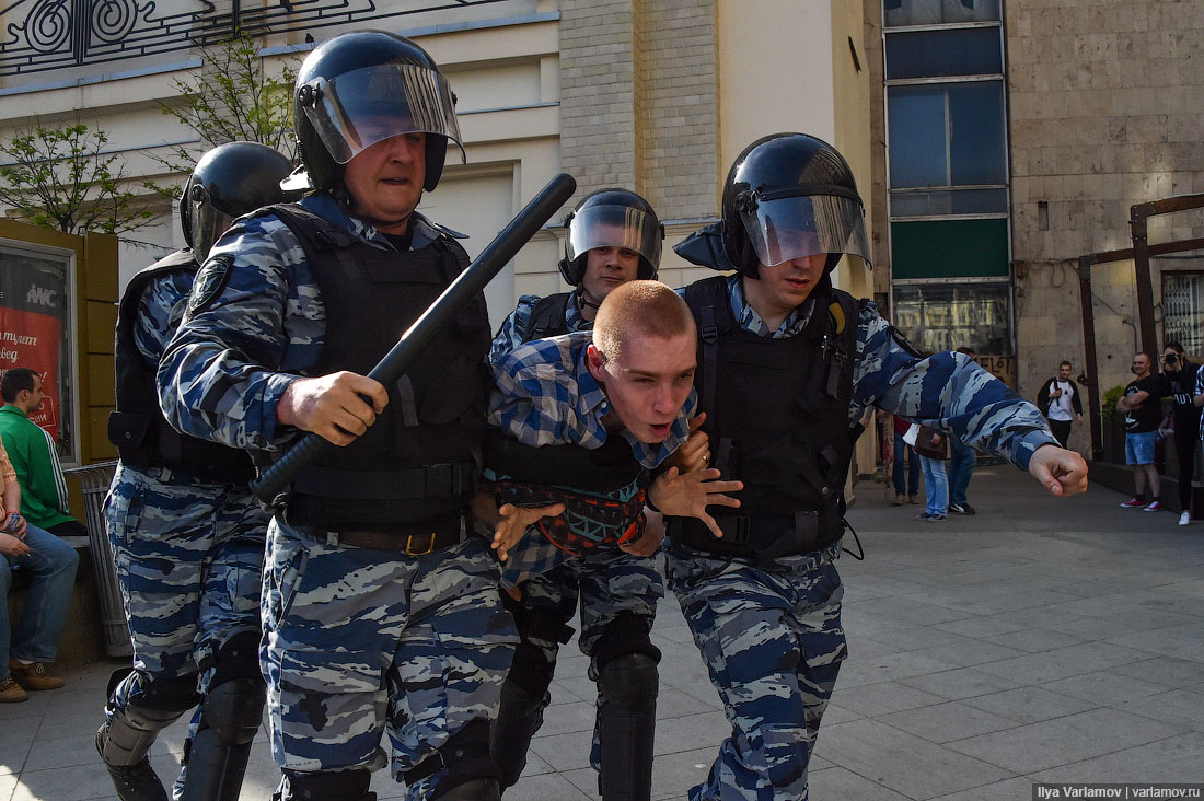 Студента 1-го курса университета "Дубна" 17-летнего Евгения Шпанова 5 мая 2018 года во время задержания на несанкционированном оппозиционном митинге "Он нам не царь" на Пушкинской площади в Москве избили четверо омоновцев. Теперь он сам и его родители хотят наказать полицейских за чрезмерное и ничем не обоснованное применение физической силы.