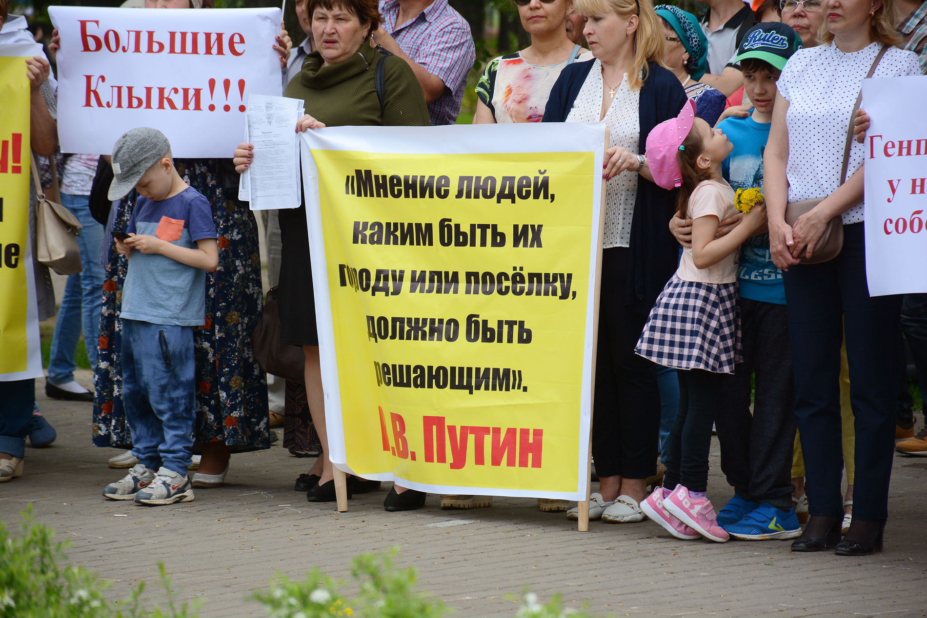 … Две женщины держат плакат "Мнение людей, каким быть их городу или поселку, должно быть решающим. В.В.Путин ". Одна принесла с собой табуреточку. И кипу документов. С документами, подтверждающими права собственности на землю и дома, здесь почти все. Одна из женщин даже держит эти бумаги перед собой — вместо плаката.