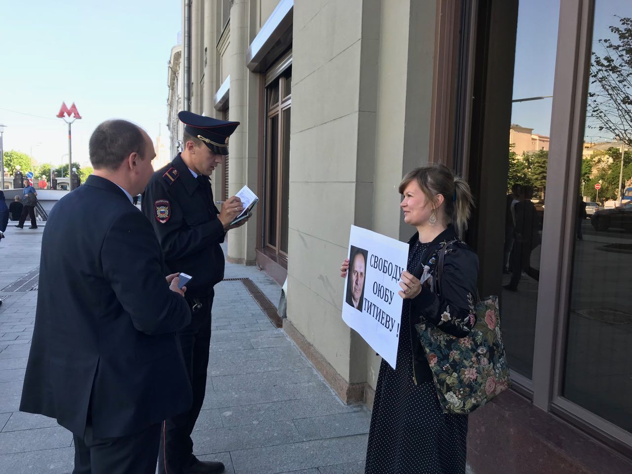 В Москве у здания администрации президента проходят одиночные пикеты в поддержку главы грозненского отделения «Мемориала» Оюба Титиева, обвиняемого в хранении наркотиков в крупном размере (часть 2 статьи 228 УК). Об этом сообщается в телеграм-канале организации.