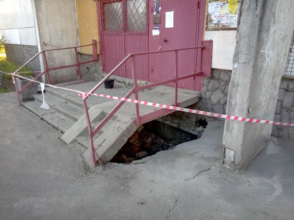 Около парадной жилого дома на Пулковском шоссе, 15 провалился асфальт, сообщают очевидцы в группе «ДТП и ЧП». Покрытие провалилось под лестницей, которая ведет в парадную. Ее огородили лентой. Сама лестница тоже накренилась, на снимках видно, что она покрыта трещинами.