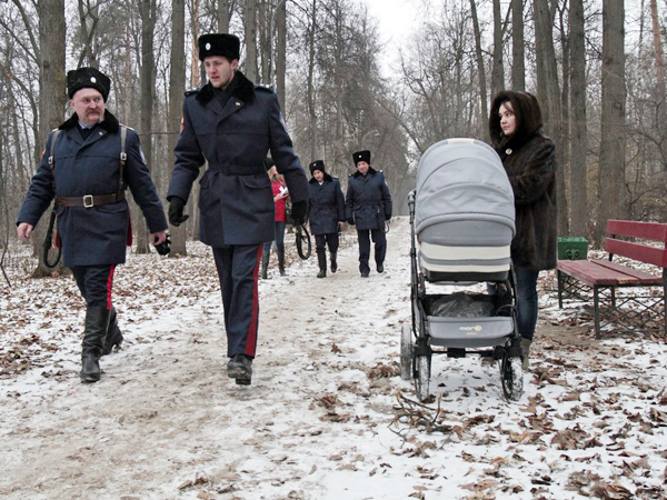 Первое дежурство дружины казаков АГН "Москва" Поэтому к охране порядка решили привлечь казаков — они вроде бы более подготовлены, более мотивированы. Конечно, я имею в виду казаков реестровых — у них статус. Этой причине они воспринимаются государством как своего рода младшие партнеры, как "свои". Ну, а "своим" позволяется куда больше, чем "чужим". Вспомните людей из организации "Серп", например; ну, или из Национально-освободительного движения. Когда они, допустим, обливали кого-то зелёнкой, то в отношении них либо не было санкции, либо санкции были достаточно мягкими.