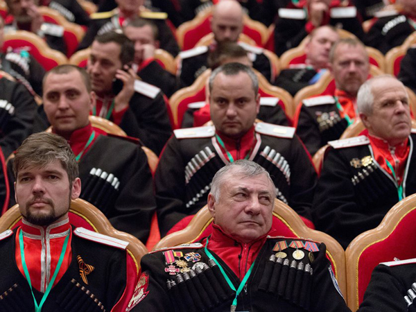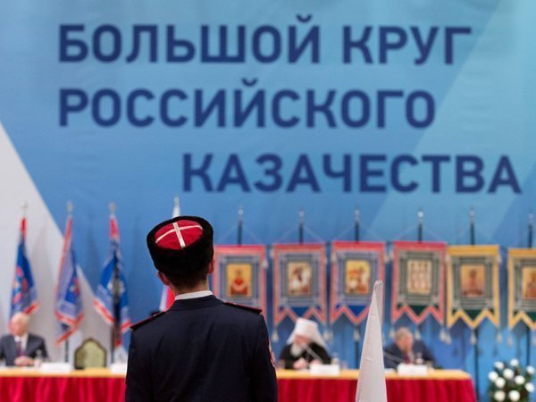 Первый Большой круг российского казачества Зыков Кирилл/АГН "Москва" «Во-первых, в России есть закон, на основе которого казаки могут привлекаться к охране порядка. Это Федеральный закон; на его основании принимаются региональные акты, и казаков в разных регионах привлекают для выполнения этих функций. Во-вторых, я думаю, что значительную роль здесь сыграл фактор Крыма. В 2014 году казаки участвовали в присоединении Крыма, причём это было реестровое казачье войско.