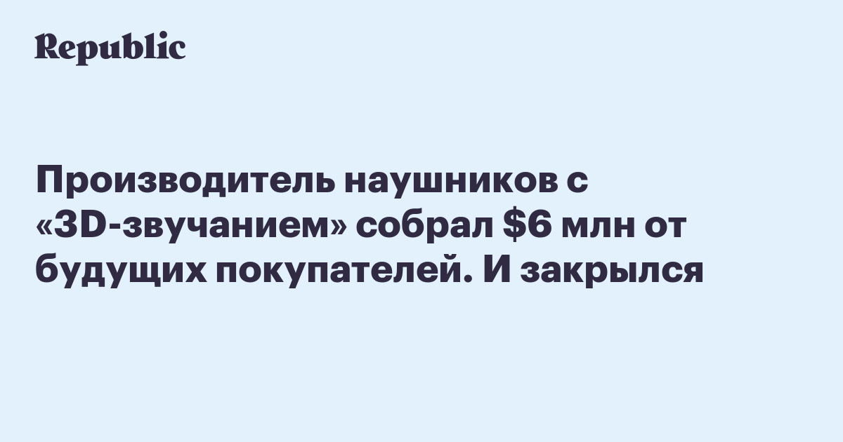 Производитель наушников с «3D-звучанием» собрал $6 млн от будущих покупателей. И закрылся