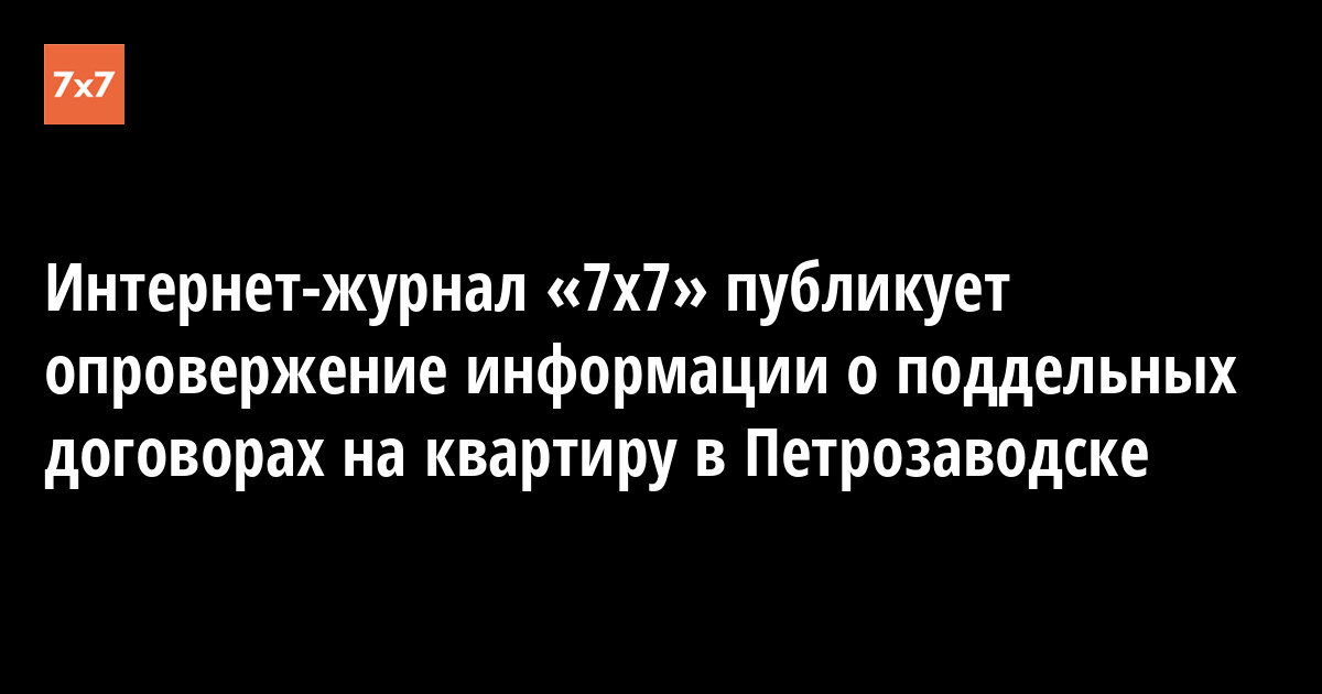 Интернет-журнал «7x7» публикует опровержение информации о поддельных договорах на квартиру в Петрозаводске