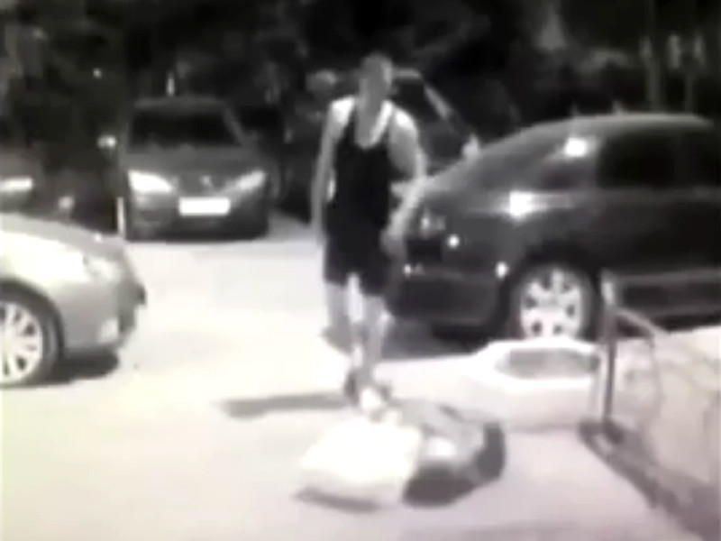 Также была опубликована видеозапись нападения, сделанная камерой наблюдения. Судя по кадрам, мужчина избивал потерпевшую прямо возле подъезда. Злоумышленник в черной майке-"алкашке" и шортах подошел к невысокой престарелой женщине и ударил ее по голове, после чего старушка упала навзничь. Затем мужчина стал пинать ногами потерпевшую, высыпал вещи из ее пакета, в котором нашел острый предмет и ранил им пострадавшую в голову.