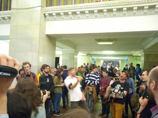 Участников группы «Аркадий Коц» Николая Олейникова и Кирилла Медведева пропустили в здание МГУ, хотя сначала полицейские отняли у них пропуска на территорию. Музыканты спели несколько песен, а позднее отправились с прогулкой-экскурсией вместе с другими участниками «Фестиваля за перенос фестиваля болельщиков» вокруг МГУ. Через какое-то время Олейников и Медведев покинули общую группу и направились домой, и в этот момент Олейникова задержали.