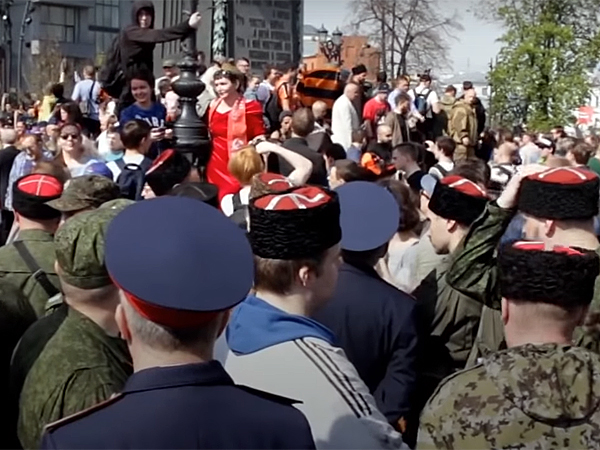 Казаки на Пушкинской площади 5 мая 2018 г. youtube.com Хотя первоначально власти утверждали, что казаков среди обеспечивающих порядок на акции не было. «В расчете сил и средств по обеспечению безопасности никаких казаков, естественно, не было. Они не привлекались ни властью, ни полицией для обеспечения общественного порядка», — привело, например, слова руководителя департамента региональной безопасности Москвы Владимира Черникова интернет-издание Lenta.Ru.