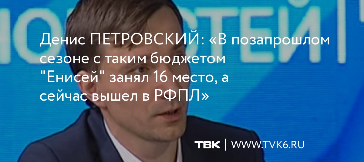 Денис ПЕТРОВСКИЙ: «В позапрошлом сезоне с таким бюджетом "Енисей" занял 16 место, а сейчас вышел в РФПЛ»
