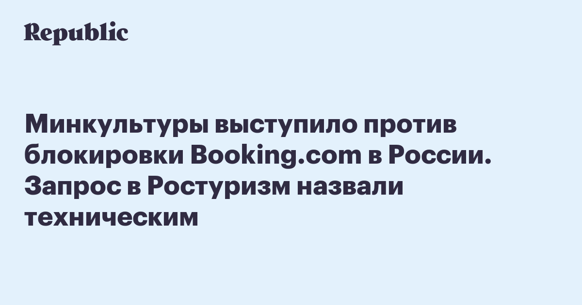 «Минкультуры России не имеет полномочий по запрету на использование сервиса Booking.com, равно как и планов по какому-либо регулированию его деятельности на территории Российской Федерации. Более того, ведомство категорически против подобной постановки вопроса в принципе».