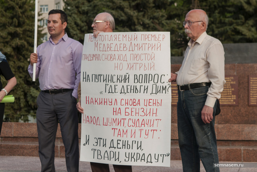— Выборы прошли. 7 мая была инаугурация президента, и тем же вечером цены полезли вверх. Рост цен на бензин повлечет удорожание всего, — сказал Валерий Ижицкий. Он напомнил про невыполненное обещание властей отменить транспортный налог и сохранить только акцизы и призвал добиться отмены повышения акцизов на топливо с 1 июля.