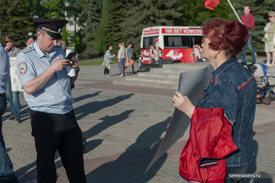 Уполномоченный следить за порядком на публичном мероприятии чиновник мэрии сообщил, что использовать звукоусиливающую аппаратуру на пикете запрещено. Тогда первый секретарь костромского обкома КПРФ Валерий Ижицкий поставил приготовленный рупорный громкоговоритель перед собой на асфальт.