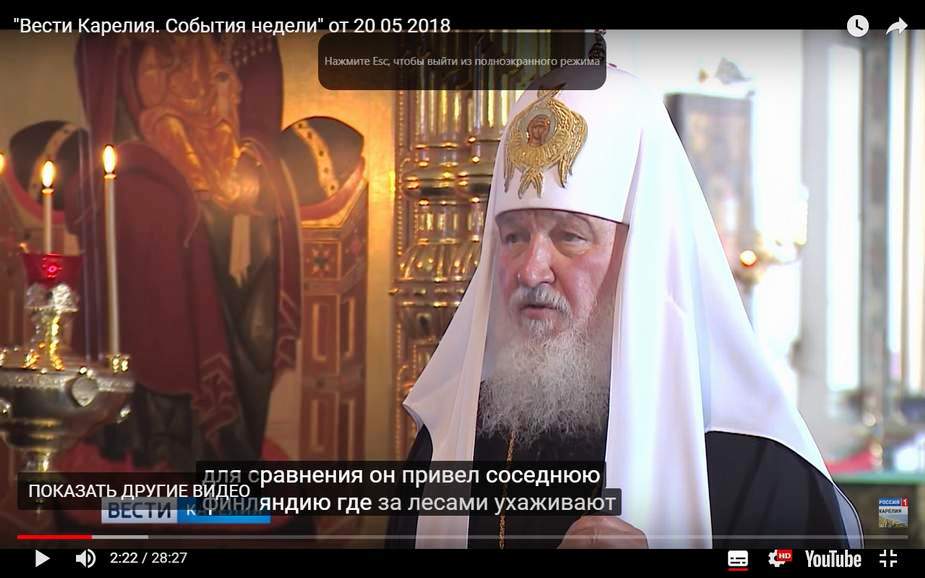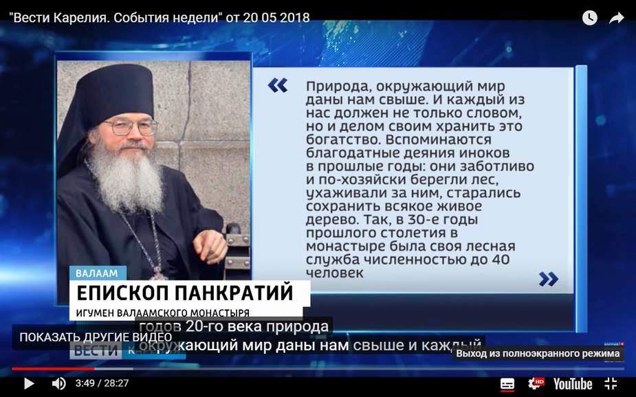 О «спасении» леса на Валааме в ролике говорит, действительно, Кирилл, но речи ему пишет, как водится, его наместник (заместитель) епископ Панкратий Жердев вместе со своим питерским пресс-секретарем и спичрайтером Михаилом Шишковым.