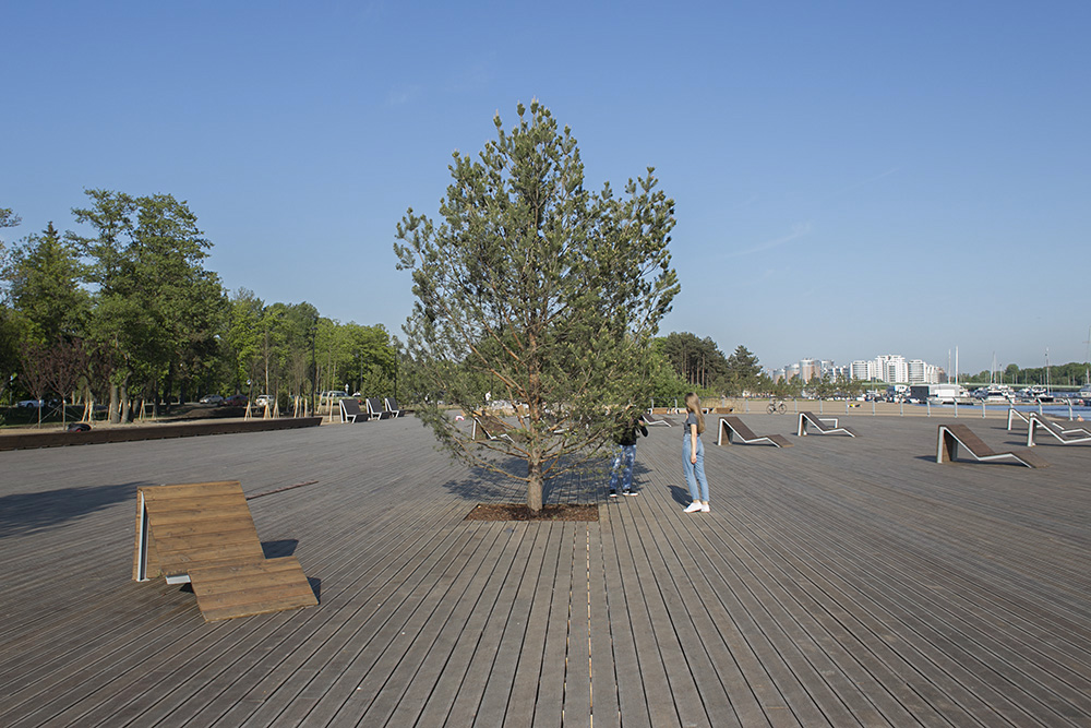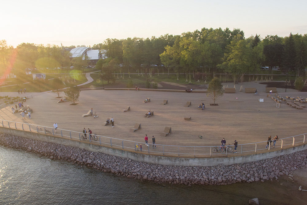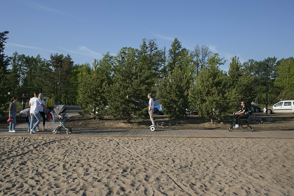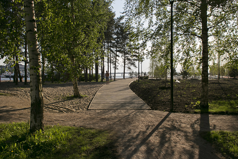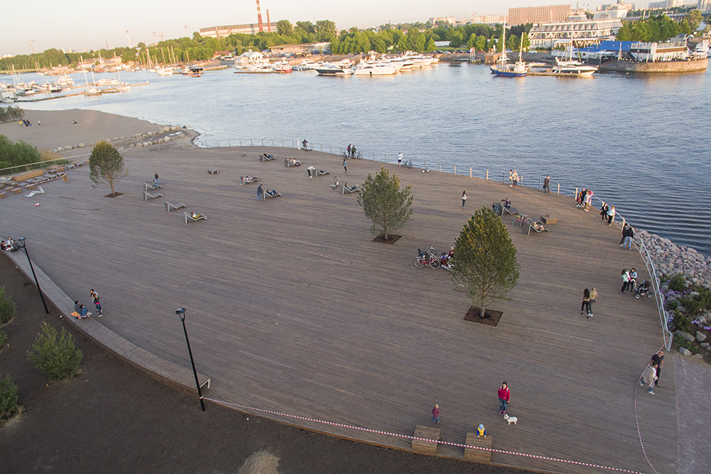 — Мы выложили 5 тысяч кв. м террасной доской, сделали ограждения, скамейки, шезлонги и урны по чертежам [комитета градостроительства и архитектуры]. Во время работы были лишь небольшие корректировки «вручную» от заместителя главного архитектора города: границу немного подвинуть, скамейку сместить, ограждения чуть иначе сделать, — рассказывает Исьянов.