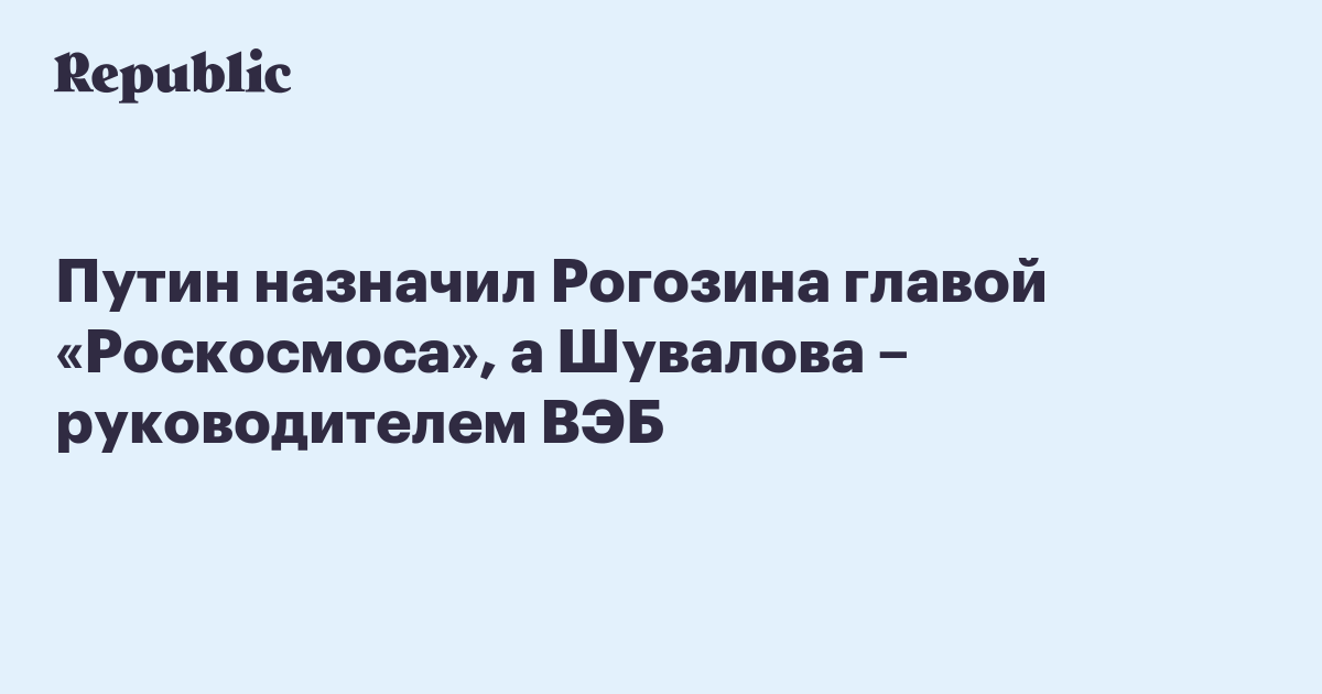 Путин назначил Рогозина главой «Роскосмоса», а Шувалова – руководителем ВЭБ