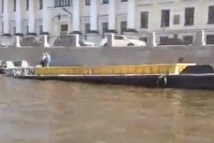 Петербуржцы сняли на видео тонущую на Фонтанке баржу