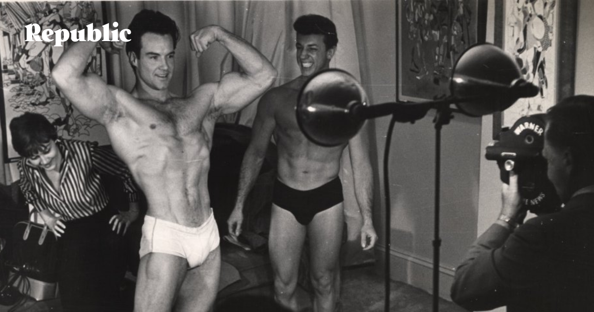 Уоррен Фарелл (слева) оценивает участника конкурса красоты среди мужчин, 1976 год. Фото: wikipedia.org