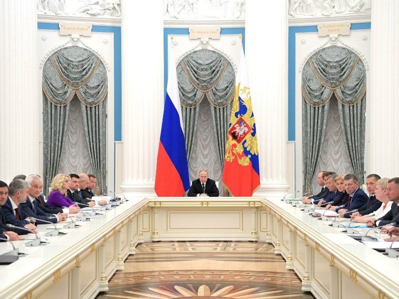 В Екатерининском зале Первого корпуса Кремля состоялось первое совещание президента РФ Владимира Путина с обновленным кабинетом министров, состав которого, как и предусмотрено российским законодательством, сменился после инаугурации главы государства.