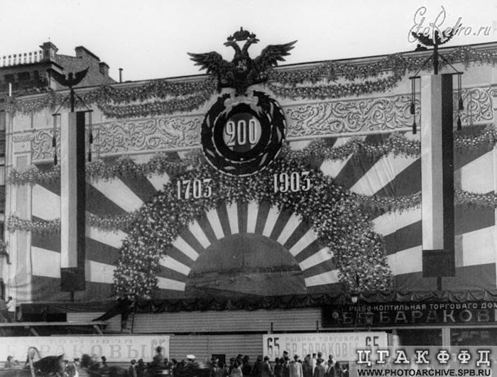 На 200-летие Петербурга многие здания украсили, по городу шли парады и гуляния