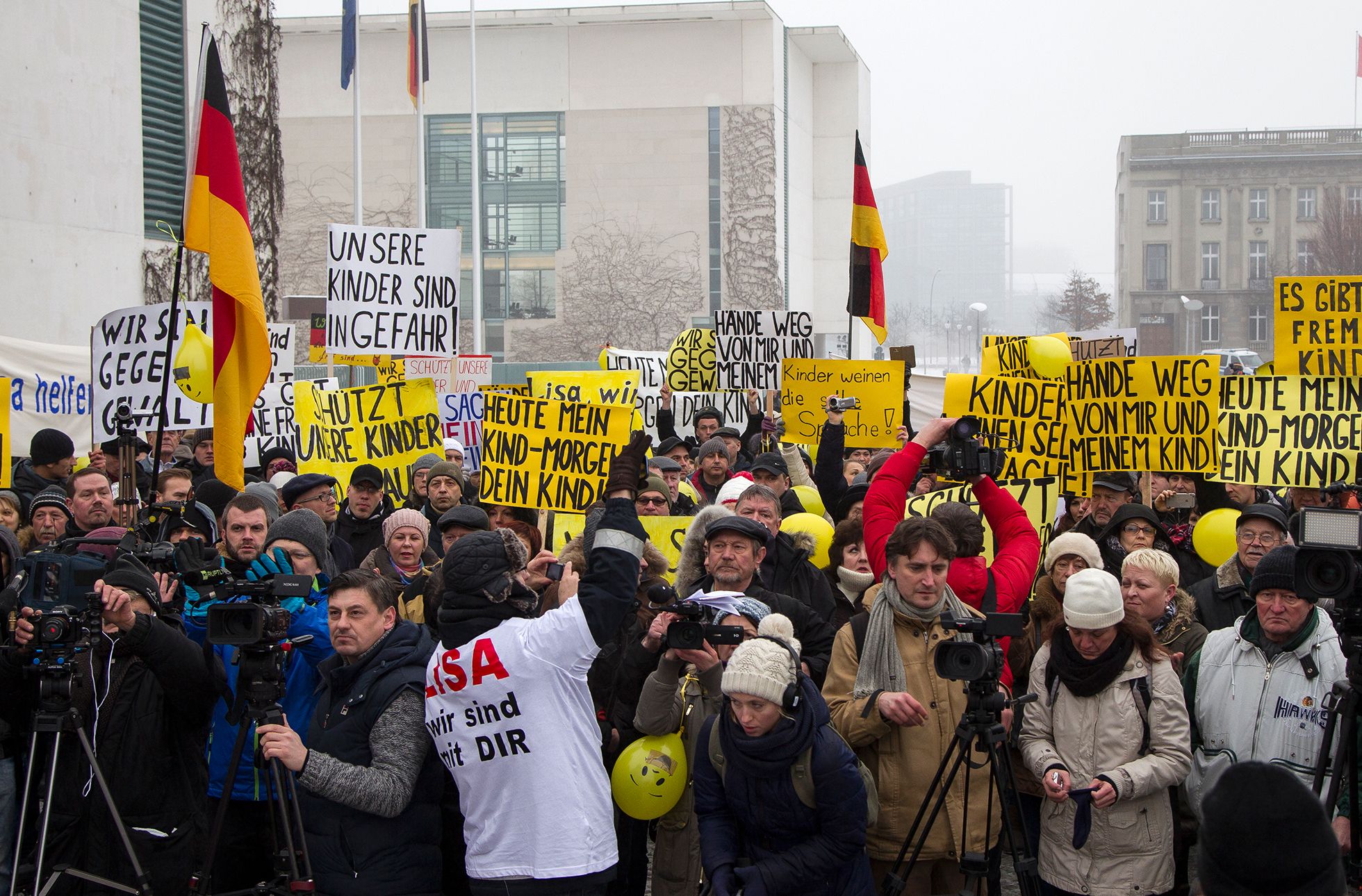В Берлине и других городах Германии прошли многочисленные митинги, в ходе которых собравшиеся — в основном русскоговорящие — протестовали против насилия и требовали наказания для мигрантов. Одним из организаторов берлинских митингов был «Международный конвент русских немцев» — одна из национальных ассоциаций переселенцев (при этом крупнейшая такая организация, Землячество немцев из России, — держалась в стороне от конфликта), а также право-популистская партия «Альтернатива для Германии» (ее обычно обозначают аббревиатурой AfD). В ходе некоторых акций к митингующим присоединялись неонацистские группы. Митингующие требовали непредвзятого расследования, звучали антимигрантские лозунги и требования отставки правительства Ангелы Меркель.