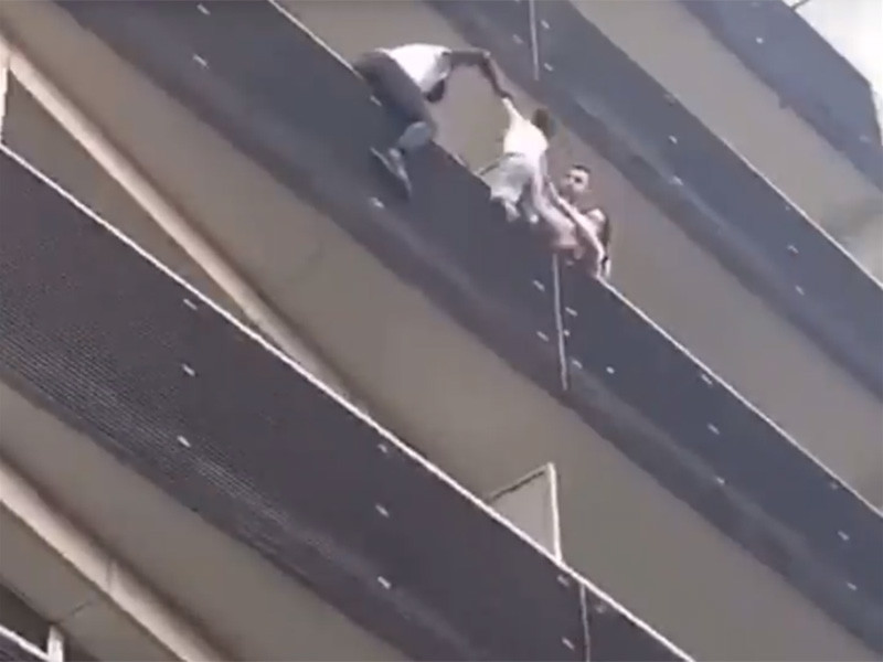 На видео видно, что четырехлетний мальчик висит снаружи и к нему тянется мужчина, которому мешает перехватить ребенка перегородка между соседними балконами. Внизу, на улице, собралась толпа зевак, кое-кто забрался на забор под балконами. Но только Мамуду Гассама решился лезть выше, быстро взобрался по фасаду на пятый этаж, после чего схватил мальчика.