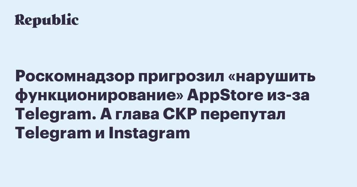 Роскомнадзор пригрозил «нарушить функционирование» AppStore из-за Telegram. А глава СКР перепутал Telegram и Instagram
