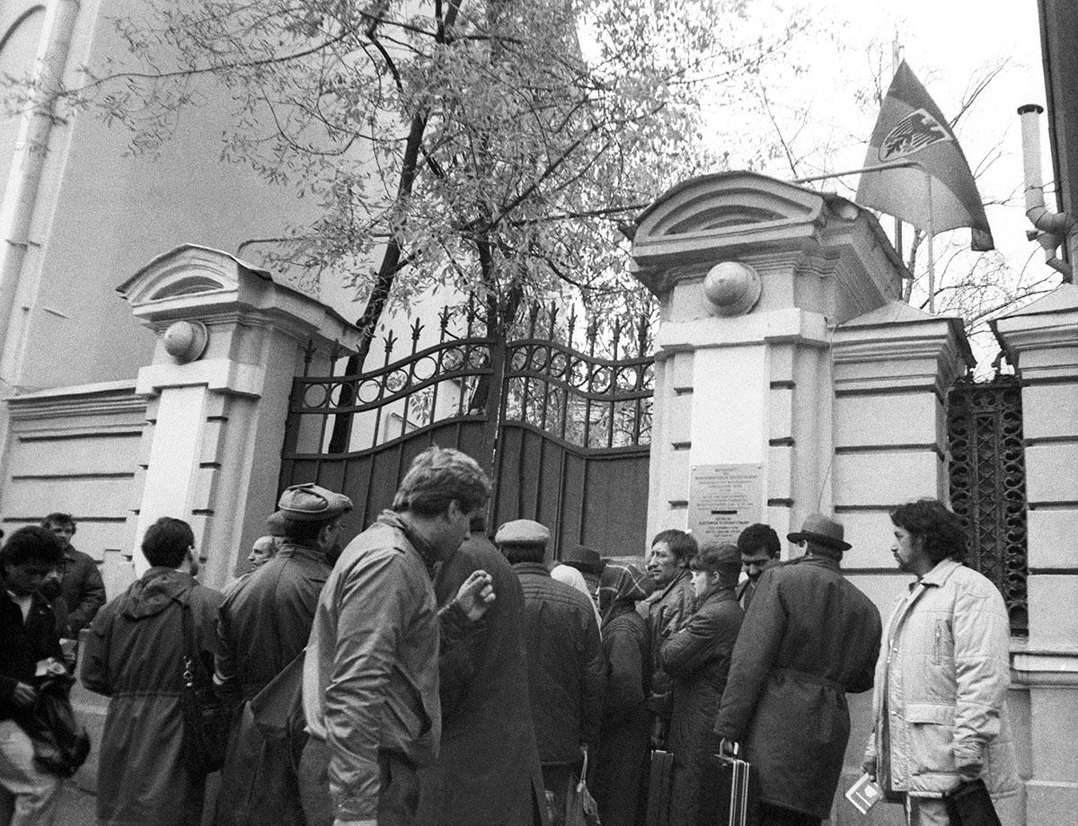 Очередь за документами на выезд на постоянное место жительства в Германию у посольства ФРГ, Москва,