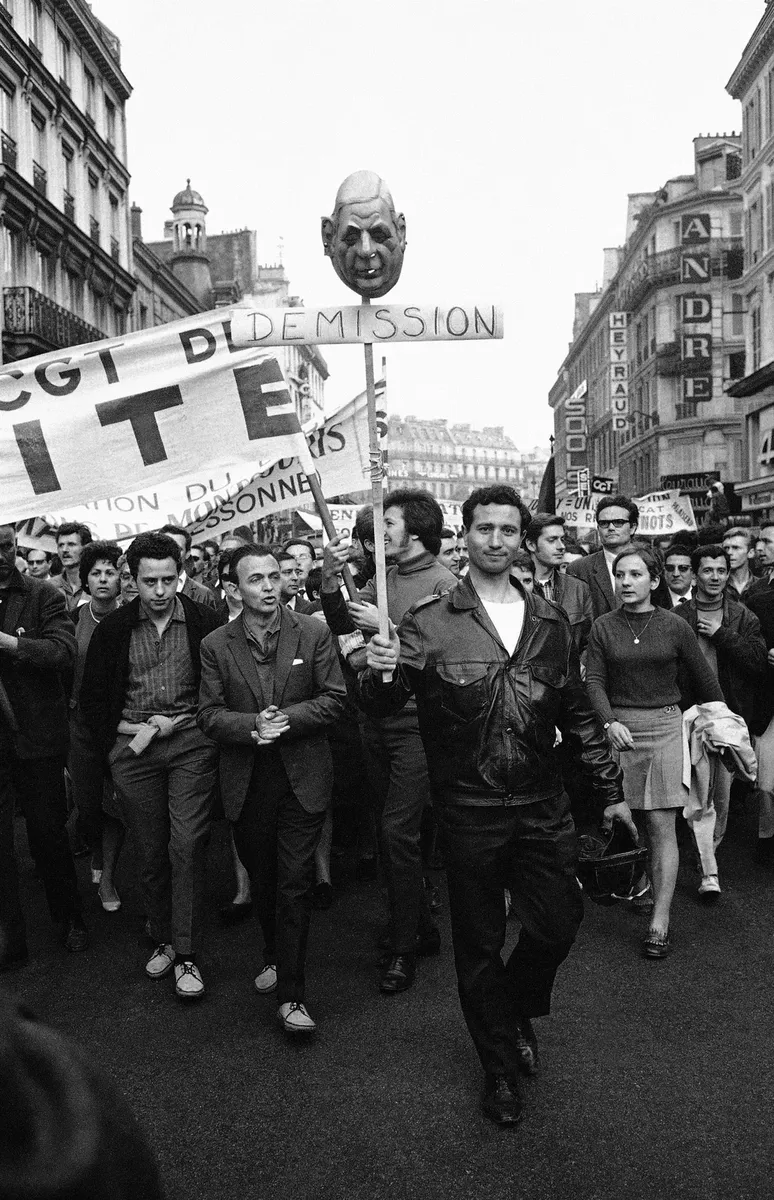 (Классовая борьба в те дни шла с перехлестом. Де Голля студенты изображали в маске Гитлера.)