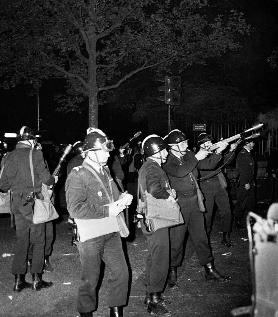 Полиция нарушает соглашение: студентов заталкивают в «автозаки». Для разгона толпы, собравшейся к этому времени перед входом, спецназовцы используют слезоточивые гранаты. Толпа кричит: «Сорбонну — студентам!» и «CRS — SS!». Кто-то протыкает колесо полицейской машины. В кожаные плащи летят камни. Один разбивает стекло машины и ранит в голову капрала Кристиана Брюне.