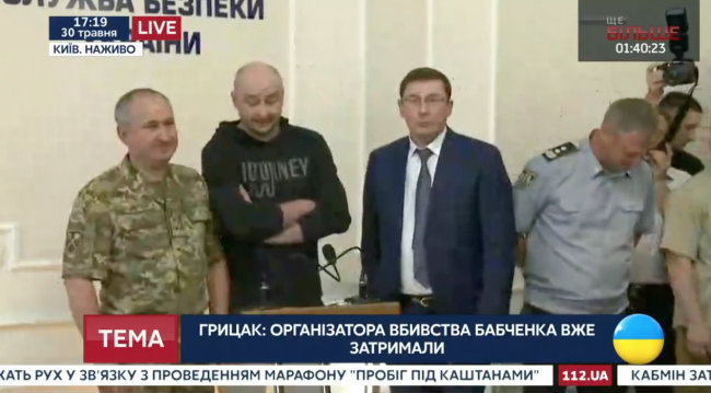 Бабченко появился на пресс-конференции вместе с главой СБУ Василием Грицаком, где принес извинения за тайное участие в спецоперации — о нем не знала даже жена журналиста.