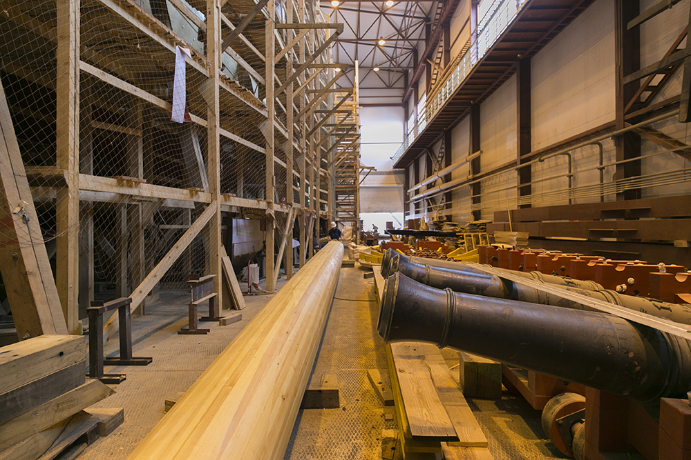 — Например, в петровские времена больше использовали нагеля (деталь парусного судна в виде деревянного или металлического стержня — прим. «Бумаги»), железный крепеж, сейчас мы отдаем предпочтение металлу, — рассказывал главный строитель современного корабля Михаил Плеханов. — Другой пример: при Петре, чтобы согнуть доску, ее отжигали, снимали внутренние напряжения на открытом огне. Мы для этих целей приобретаем парогенератор — процесс тот же, но с паром работать удобнее.