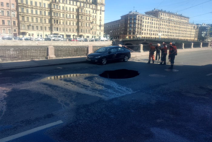 На Фонтанке перекрыли движение из-за огромной дыры в асфальте