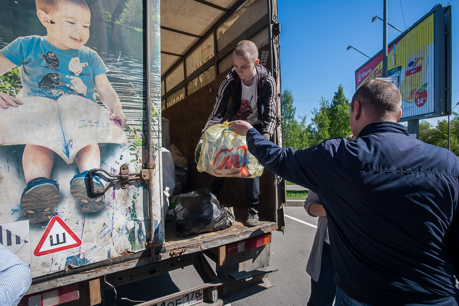 — Сегодня мы не ожидаем ажиотажа, — рассказывает волонтер Надежда. — Во-первых, погода дачная, все разъехались, во-вторых, в прошлый раз, в первые майские праздники, люди принесли столько, что у нас за час набилась полная машина и пришлось делать дополнительную разгрузку. Видимо, все сдали свои запасы после зимы.