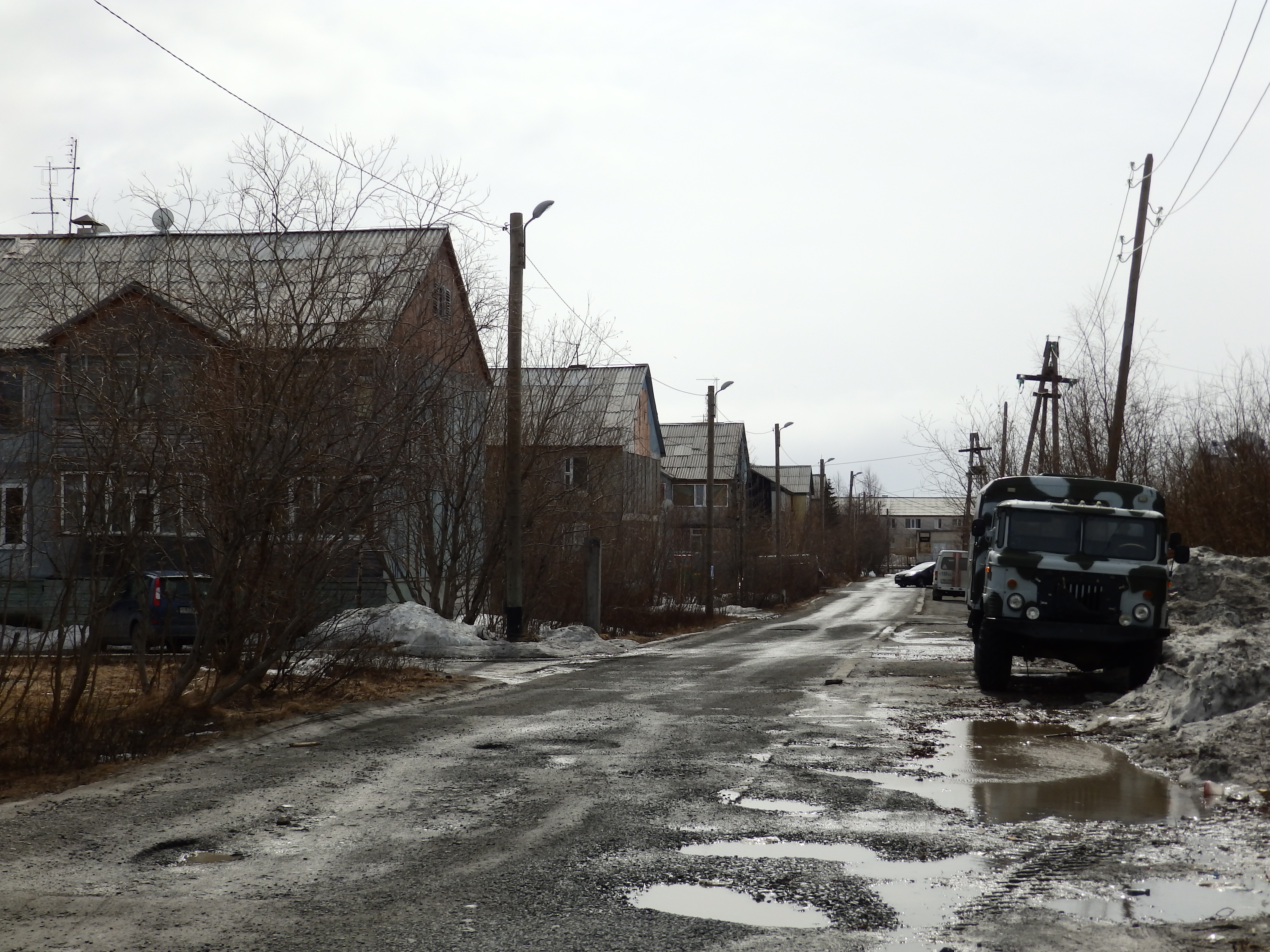 Но за "капиталками", как местные жители называют каменные дома, скрываются "деревяшки", то есть построенные полвека назад двухэтажные неказистые деревянные бараки, в которых по-прежнему проживает большинство горожан.