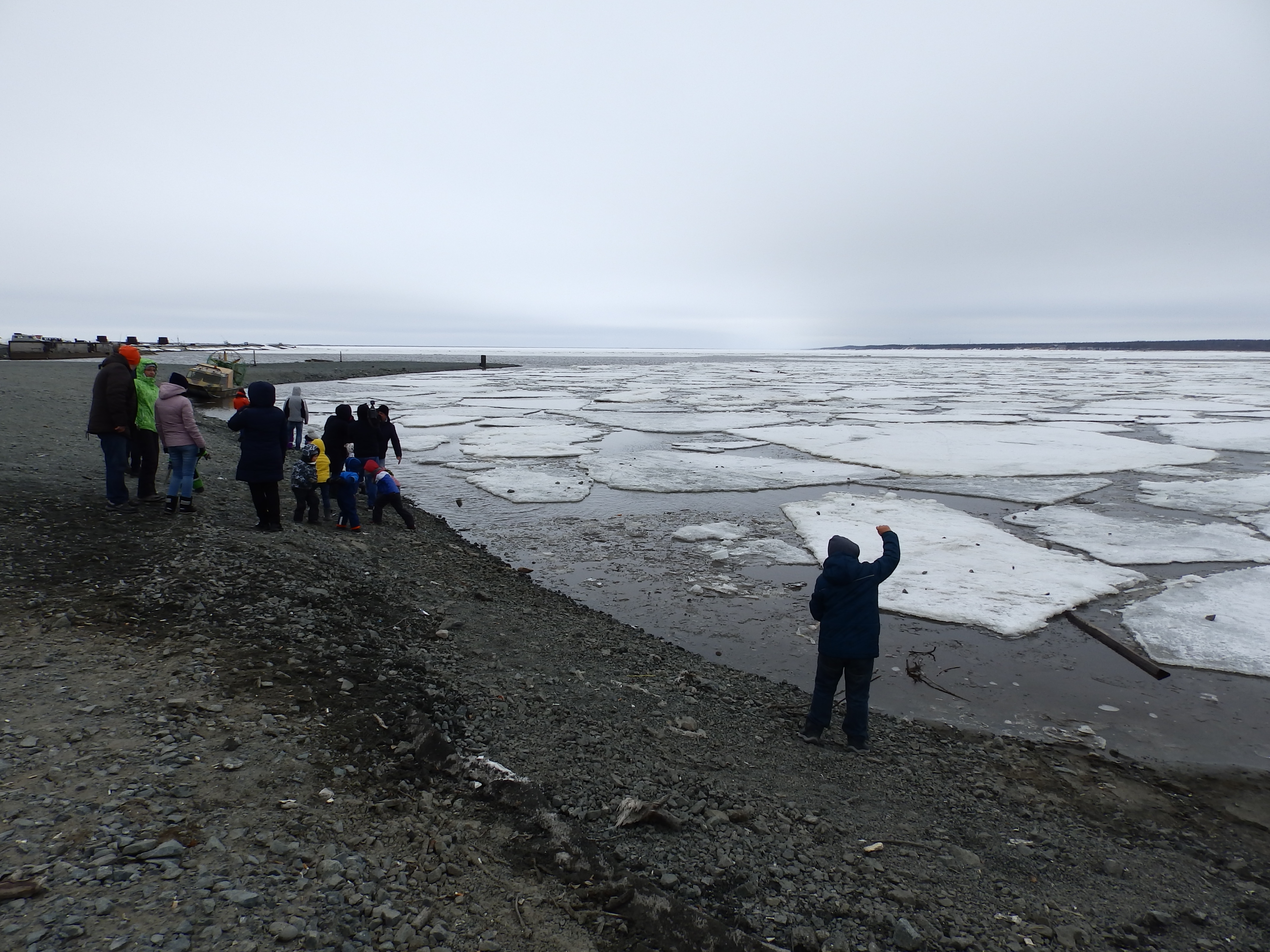 Суровость этих мест ощущается уже в аэропорту Салехарда. Все прилетающие проходят паспортный контроль, потому что здесь – пограничная зона. Конец мая – в Москве +20. А здесь – около 0 и еще лежит снег. Неожиданности продолжаются на берегу реки Обь, которая разделяет Салехард и Лабытнанги.