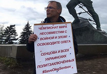 Из российских городов акция состоялась в Казани. Там пикетчик вышел к расположенному у Кремля памятнику Мусе Джалилю с плакатом "Чемпионат мира несовместим с войной и злом! Освободите Олега Сенцова и всех украинских политзаключенных". Казань - один из городов, в которых летом пройдет чемпионат мира по футболу. Сенцов, как сообщалось, приурочил свою голодовку к мундиалю - с тем, чтобы к началу соревнований состояние его здоровья стало критическим.