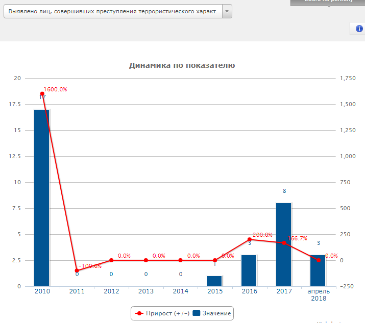 В 2017 году выявлено восемь террористов, в первом квартале 2018 года — три.