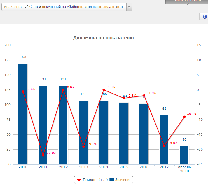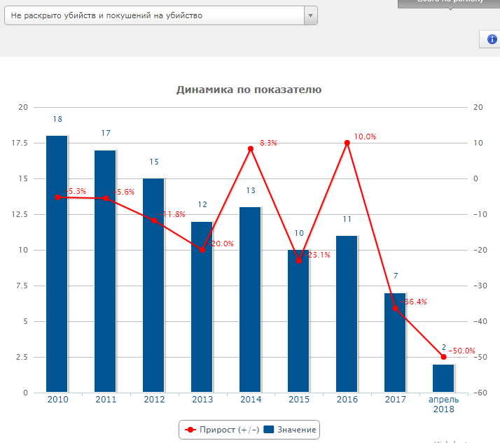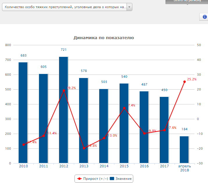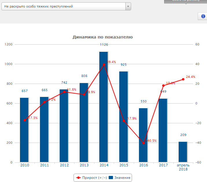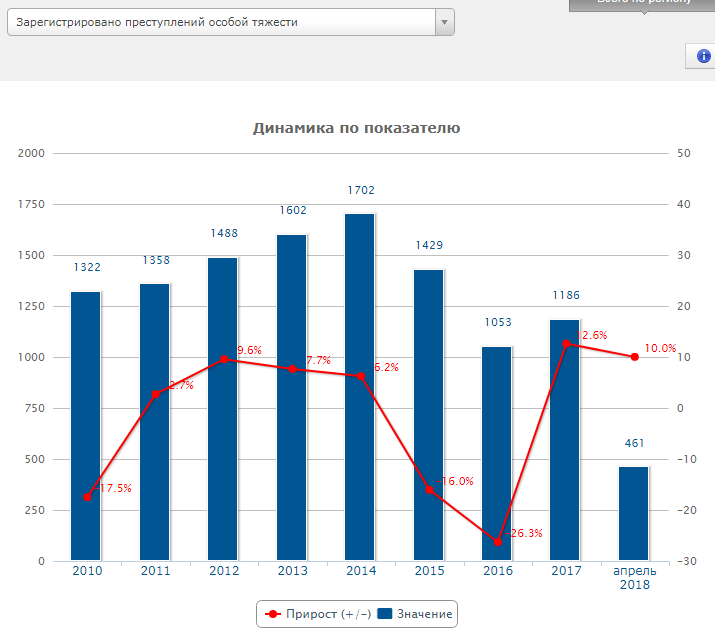 С раскрываемостью остальных преступлений несколько хуже. Так, только за 2017 год, по данным того же портала правовой статистики, зарегистрировано 1 тыс. 186 особо тяжких преступлений, 450 дошли до суда.